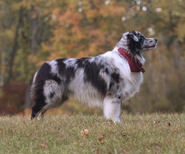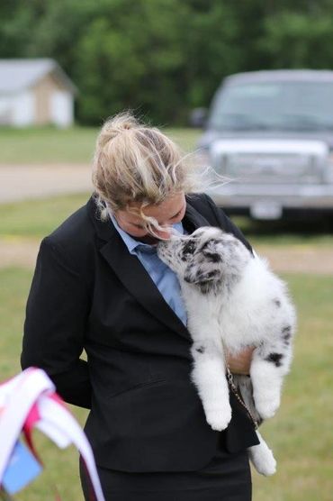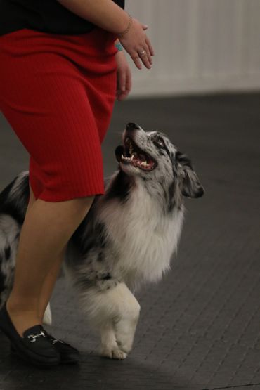 Maverick lives with Adam, Lanae, Maya and Missy. Maverick finished is ASCA Championship out of the 15-18 month class. He has earned 2 All Around Aussie awards and a High In Trail Rally Dog award. Mav placed 2nd in MVA at Harvest Moon ASCA 2023. This is one special blue boy that does it all and is happiest to be doing it with Lanae. He is currently competing in Rally, Agility, Obedience, and is a Conformation Special.