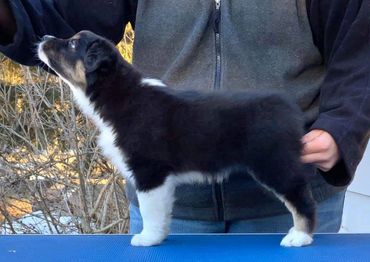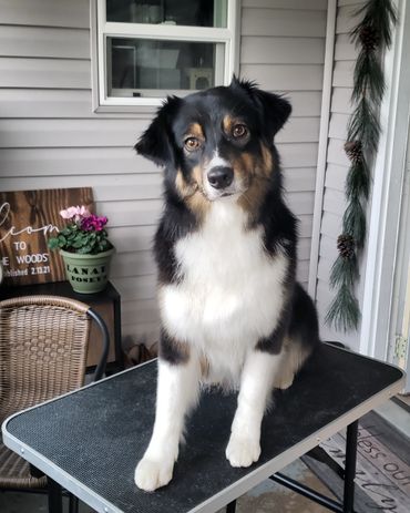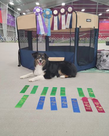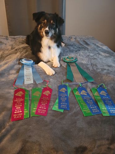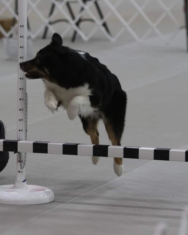 Echolight Mayan Empress, Maya, is Lanae and Adam's little black tri girl from Kristin Tardiff at Echolight Aussies. Maya is an amazing dog that is excelling in Agility, Rally, Obedience, Dock Diving, and Herding. Maya is loving and affectionate to her people and loves to please but has the perfect mix of strong will, that makes her an all star performance dog.